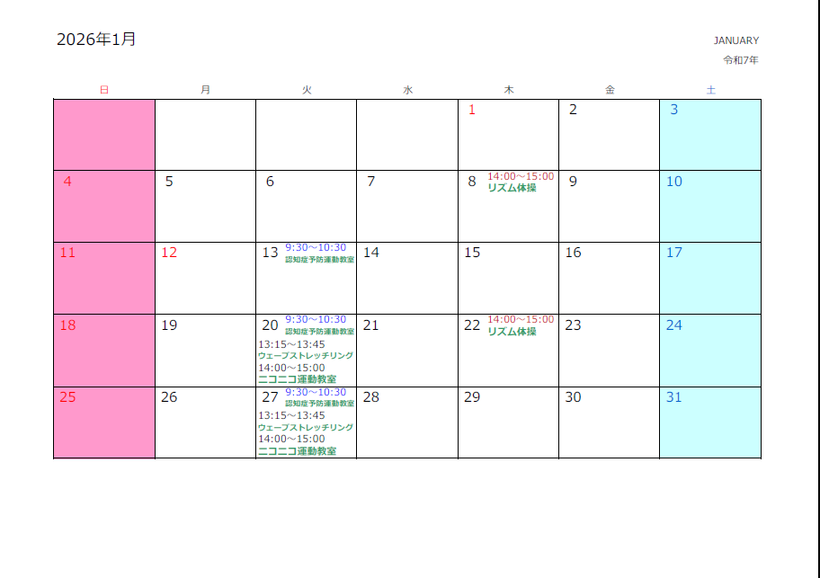 1月のスタジオ予約状況をお知らせいたします。(12/29現在)